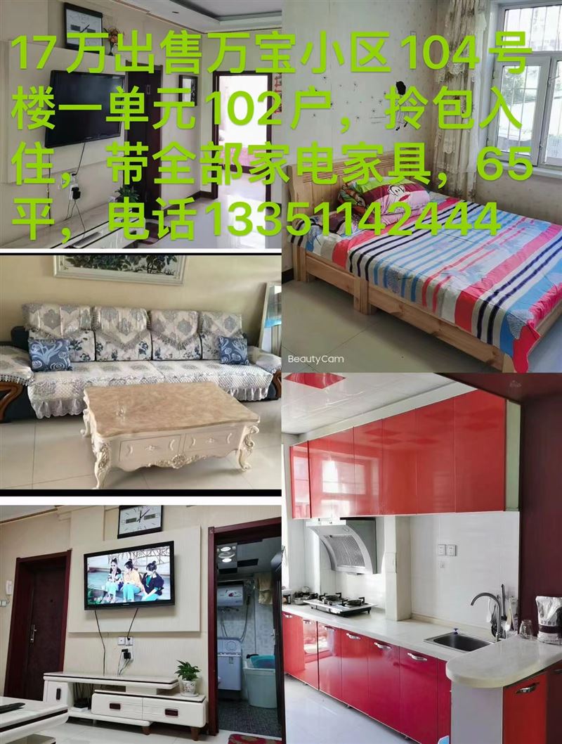 17萬(wàn)出售萬(wàn)寶小區(qū)104號(hào)樓一單元102戶(hù),拎包入住,帶全部家電家具,65平,
