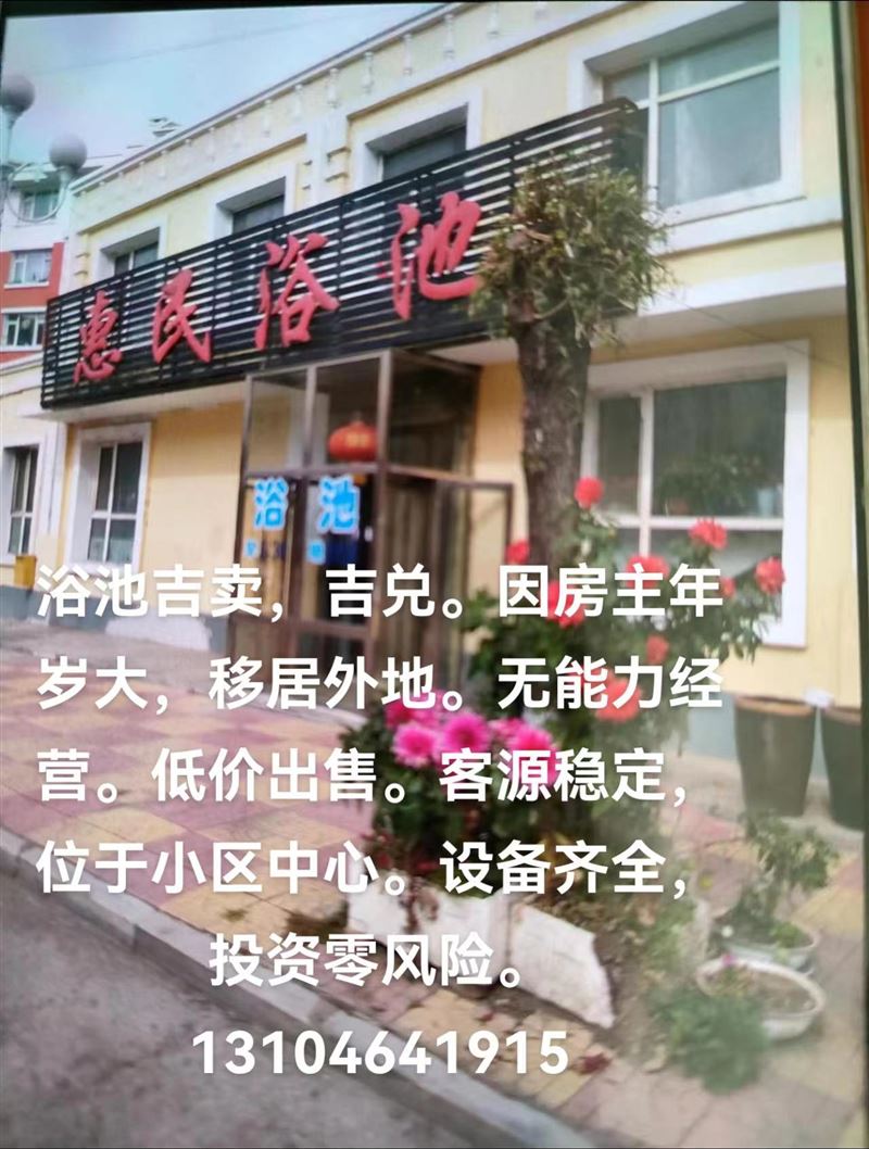 浴池吉賣,吉兌。因房主年歲大,移居外地。無能力經(jīng)營。低價出售??驮捶€(wěn)定,位于小區(qū)中心。設備齊全,投資零風險。13104641915